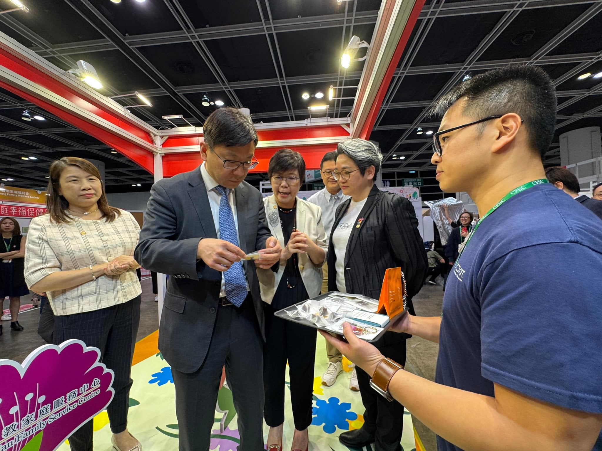 多謝勞工及福利局局長孫玉菡, JP 今日特意前來 A-Soulroom在「S+高峰會暨博覽2025」展位,了解本會的亮點計劃及成效。在A-Soulroom 思藝手作的展位內,局長參觀了殘疾學員共融共作的皮革作品,並重溫學員們昨天擔任皮革產品的模特兒片段,從學員們在到台上的笑容及自信,以及照顧者感到歡欣的畫面,讓局長認識到他們的故事,CFSC 的多元及創新服務支援學員發揮潛能,發光發亮,改變生命。